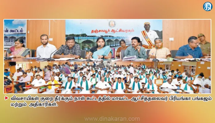 விவசாயிகள் குறை தீர்க்கும் நாள் கூட்டம் தஞ்சாவூர் மாவட்ட ஆட்சியர் அலுவலகக் கூட்டரங்கில் நடந்தது. மாவட்ட ஆட்சித்தலைவர் பிரியங்கா பங்கஜம் தலைமை வகித்தார். இக்கூட்டத்தில் மாவட்ட ஆட்சித்தலைவர் தெரிவித்ததாவது: