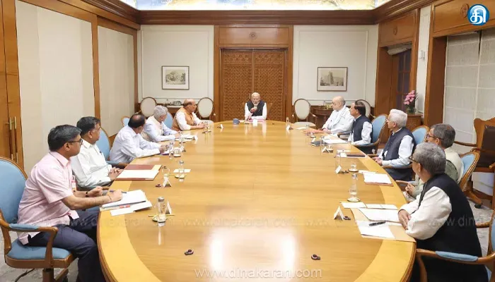 இக்கூட்டத்தில் அமித்ஷா, ராஜ்நாத் சிங், ஜெய்சங்கர், அஜித் தோவல் ஆகியோர் பங்கேற்றனர். இதில் அடுத்தகட்ட நடவடிக்கை குறித்து ஆலோசிக்கப்பட்டது. இந்த தாக்குதல் சம்பவத்தில் பாகிஸ்தான் சம்மந்தப்பட்டிருப்பதாக சந்தேகிக்கப்படுகிறது. எனவே, பாகிஸ்தான் தீவிரவாதிகளுக்கு எதிராக எடுக்க வேண்டிய நடவடிக்கை குறித்து பிரதமர் மோடி தலைமையில் ஆலோசிக்கப்பட்டுள்ளது. தாக்குதல் சம்பவத்தில் இருந்து தப்பிய சுற்றுலா பயணிகள் அளித்த தகவல்கள் மற்றும் அடையாளங்களின் அடிப்படையில் 3 தீவிரவாதிகளின் வரைபடங்களை பாதுகாப்பு படை வெளியிட்டுள்ளது.