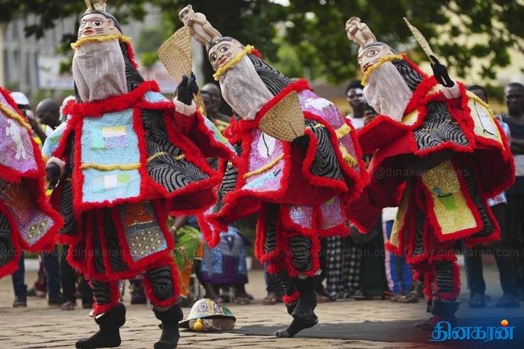 பெனின் நாட்டில் களைகட்டிய பாரம்பரிய முகமூடித் திருவிழா..!!