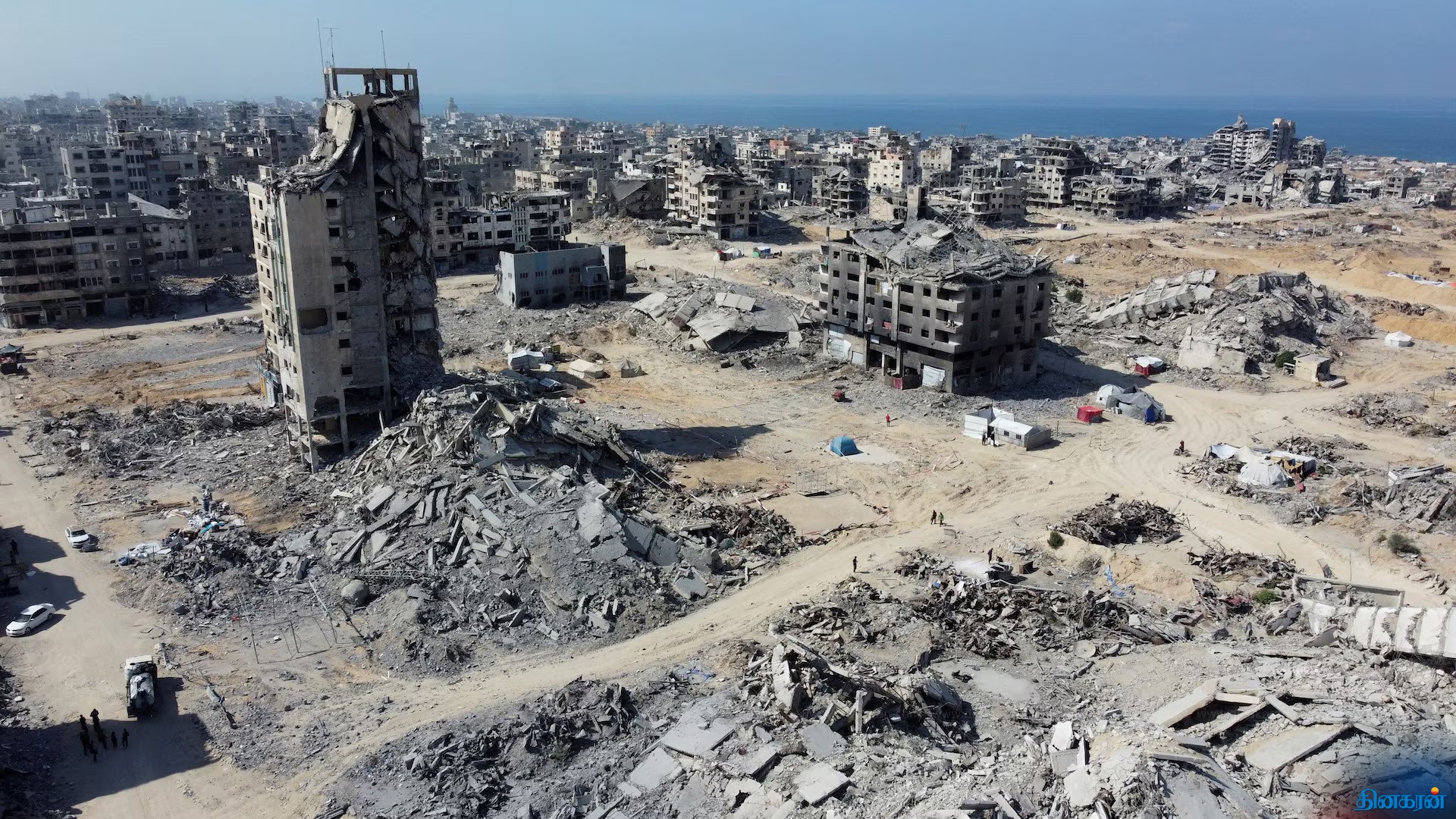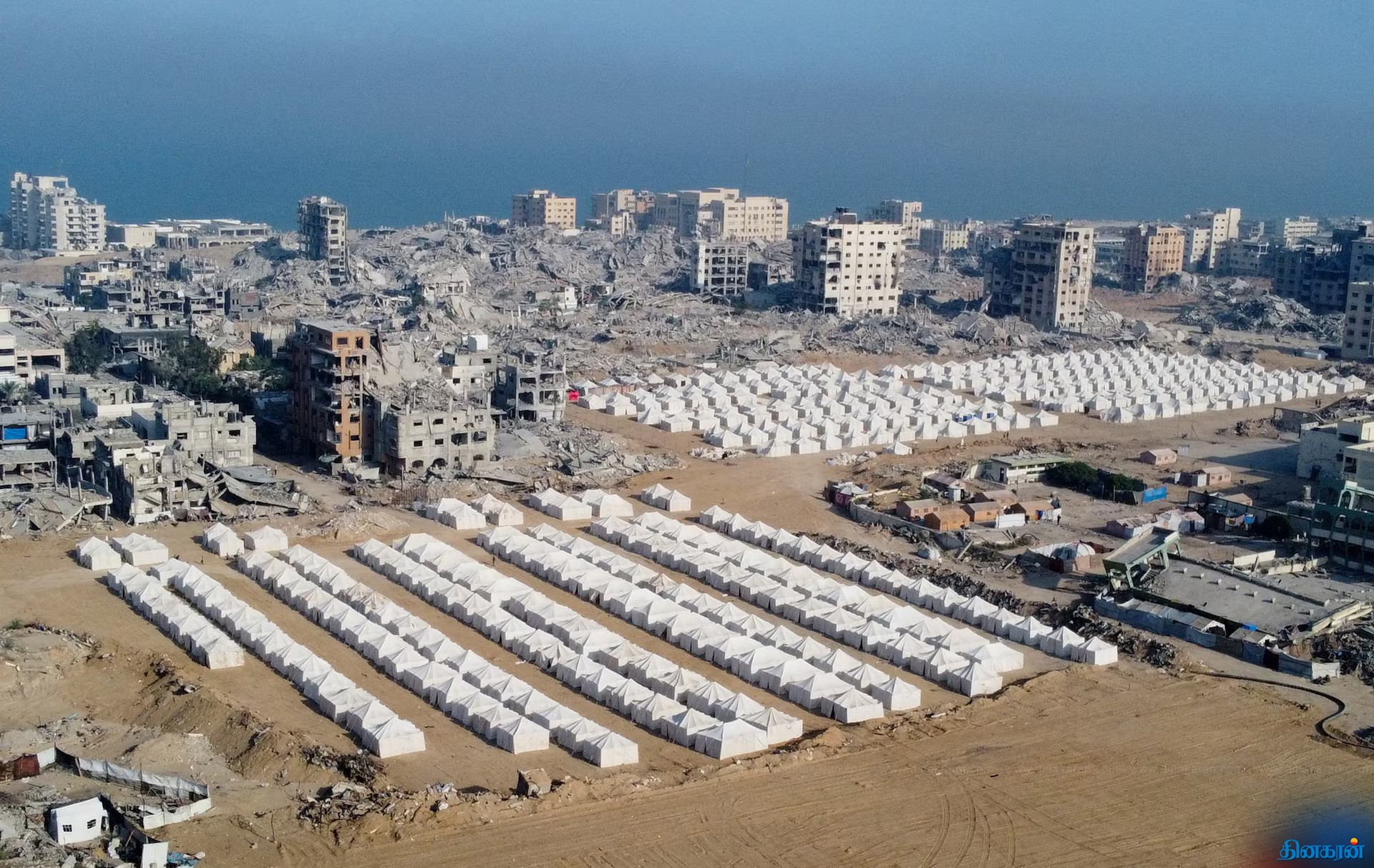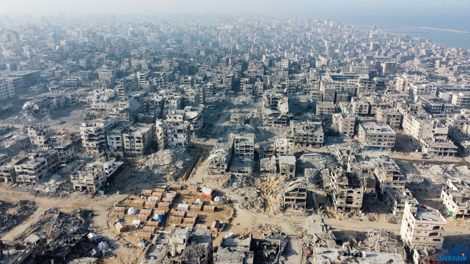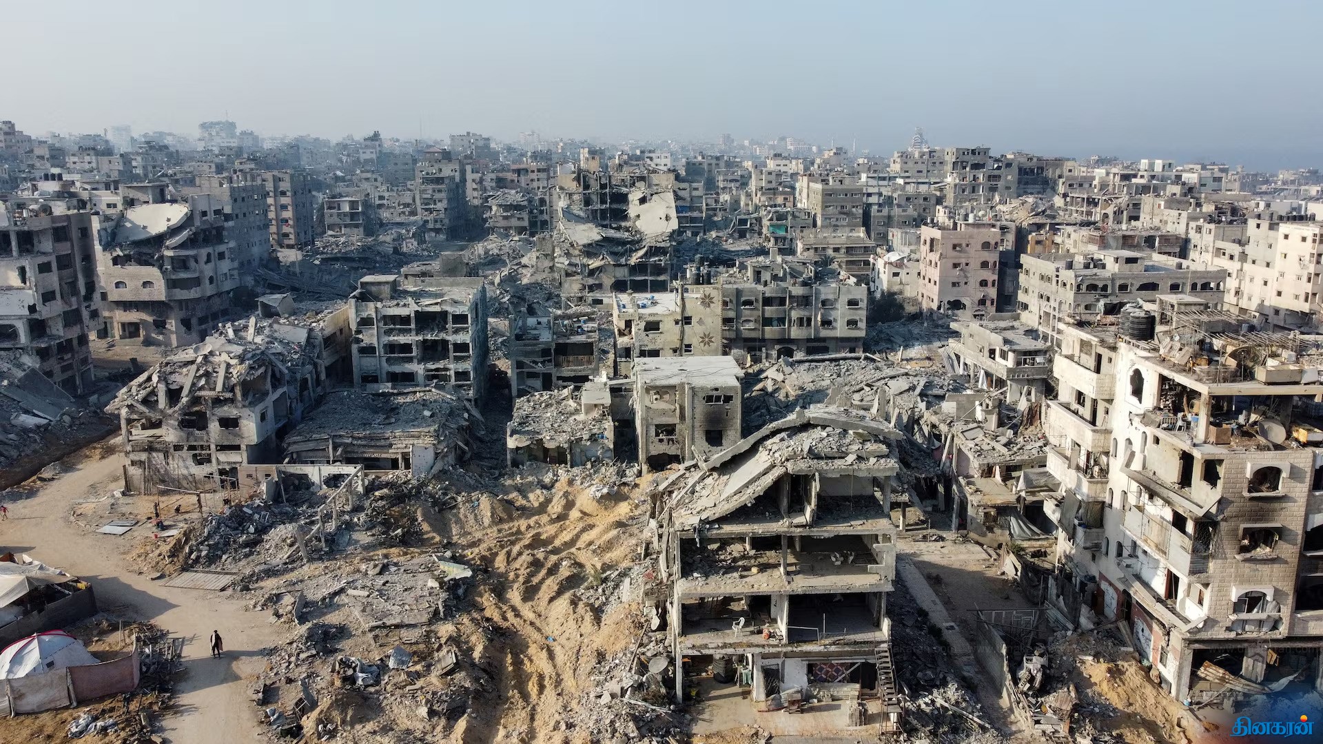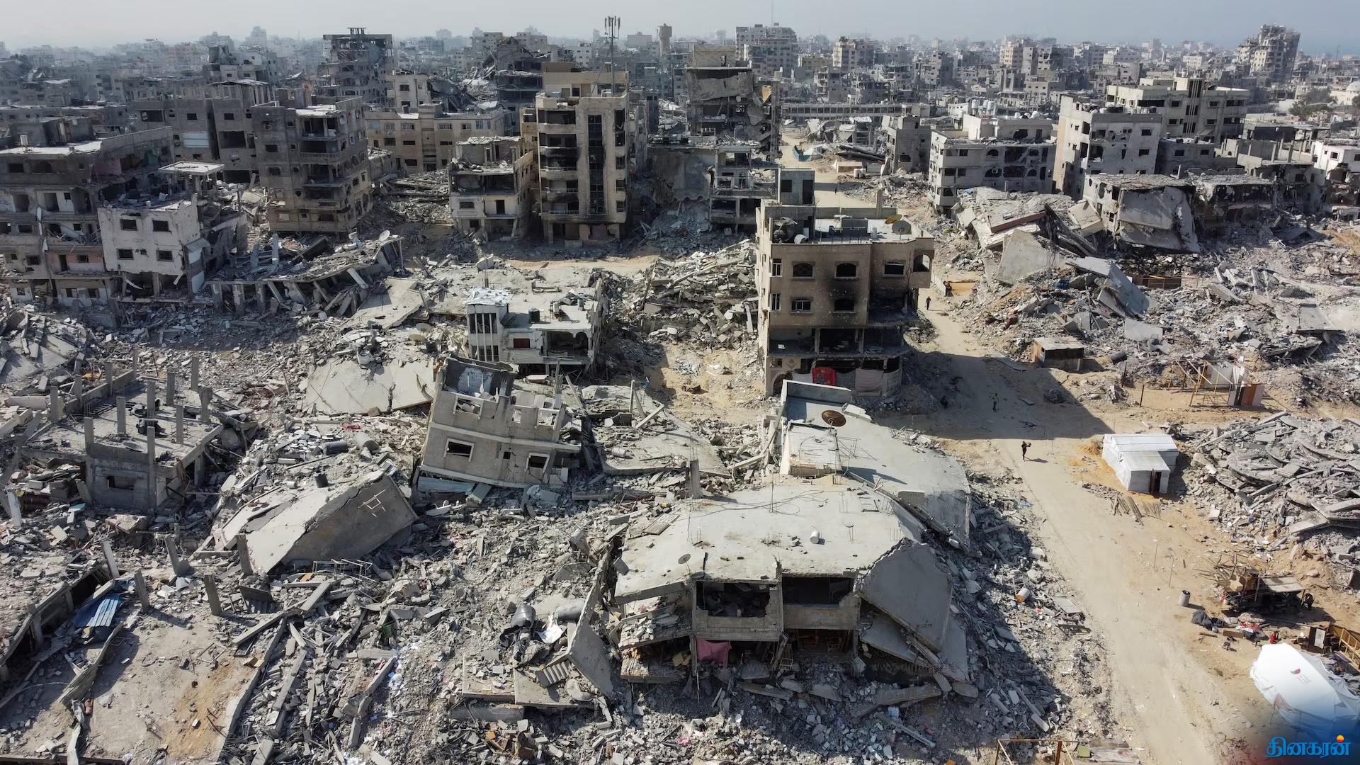 இரண்டு வருட போருக்கு பின் உருக்குலைந்த காசாவின் டிரோன் காட்சி!!