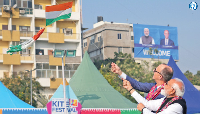 சபர்மதி ஆசிரமத்தில் அஞ்சலி செலுத்திய பின், பிரதமர் மோடி, ஜெர்மனி அதிபர் மெர்ஸ் இருவரும் சபர்மதி ஆற்றங்கரையோரம் நடந்த சர்வதேச பட்டம் விடும் திருவிழாவை தொடங்கி வைத்தனர். அப்போது இரு நாட்டு தேசிய கொடிகள் அச்சிடப்பட்ட பட்டத்தை இரு தலைவர்கள் பறக்க விட்டு மகிழ்ந்தனர். இந்தியா-ஜெர்மனி நாடுகளின் நட்புறவை உணர்த்தும் வாசகங்கள் அடங்கிய பட்டங்கள், இந்து கடவுள்களின் பட்டங்கள் பறக்க விடப்பட்டன. இந்த திருவிழாவில் 50 நாடுகளைச் சேர்ந்த 135 பட்டம் விடும் நிபுணர்கள் பங்கேற்று 1000க்கும் மேற்பட்ட விதவிதமான பட்டங்களை பறக்கவிட உள்ளனர்.
