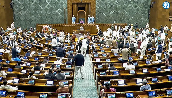 இதுதொடர்பாக அவர் கூறியதாவது: மக்களவையில் சில எம்பிக்கள் முறையற்ற முறையில் நடந்து கொண்டனர். இது நாடாளுமன்ற வரலாற்றில் ஒரு கரும்புள்ளி. வரலாற்றில் இதற்கு முன்பு கண்டிராத ஒரு நடத்தையை புதன்கிழமை சில உறுப்பினர்கள் சபையில் வெளிப்படுத்தியதை வருத்தத்துடன் தெரிவித்துக் கொள்கிறேன். வரலாற்றில் ஒருபோதும் அரசியல் வேறுபாடுகள் சபைக்கு கொண்டு வரப்பட்டதில்லை. அவையில் எதிர்க்கட்சி உறுப்பினர்களின் நடத்தை பொருத்தமானதல்ல. உண்மையில் அது ஒரு கரும்புள்ளி போன்றது.