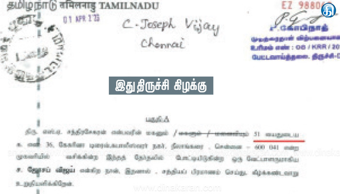 திருச்சி கிழக்கு தொகுதி வேட்பு மனுவின் போது, 51 வயது என குறிப்பிட்டு உள்ளார். அதில், ‘‘எஸ்.ஏ.சந்திரசேகரன் என்பவரின் மகன் 51வயதுடைய ஜோசப் விஜய் என்றும், சென்னை நீலாங்கரையில் வசித்து வருவதாகவும் முகவரியை தெரிவித்துள்ளார். மார்ச் 30ம் தேதி சென்னை பெரம்பூரில் 52வயது என குறிப்பிட்டு விட்டு, 3 நாளில் ஒரு வயது குறைந்தது எப்படி எனவும், சினிமாவில் டபுள் ஆக்ஷன் நடித்ததுபோல் அரசியலிலும் விஜய் டபுள் ஆக்ஷன் நடிக்கிறார் போல எனவும் சமூக வலைதளங்களில் நெட்டிசன்கள் கிண்டலடித்து வருகின்றனர்.