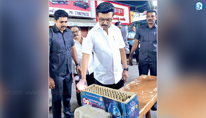 * பட்டாசு வெடித்து முதல்வர் மகிழ்ச்சி: வெள்ளைச்சட்டைக்கு மாறினார்