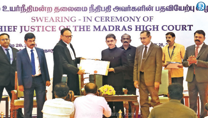 ஆளுநர் மாளிகையில் நடைபெற்ற நிகழ்ச்சியில் தலைமை நீதிபதிக்கு ஆளுநர் ஆர்.என்.ரவி பதவி பிரமாணம் செய்து வைத்தார். இந்த நிகழ்ச்சியில் மூத்த நீதிபதிகள் எஸ்.வைத்தியநாதன். ஆர்.மகாதேவன் உள்ளிட்ட நீதிபதிகள், சபாநாயகர் அப்பாவு, அமைச்சர்கள் துரைமுருகன், ரகுபதி, தங்கம் தென்னரசு, பி.கே.சேகர்பாபு, உதயநிதி ஸ்டாலின், தலைமை செயலாளர் இறையன்பு, முதல்வரின் செயலாளர் முருகானந்தம், உள்துறை செயலாளர் அமுதா, டிஜிபி சைலேந்திரபாபு, அட்வகேட் ஜெனரல் ஆர்.சண்முகசுந்தரம், மாநில தலைமை குற்றவியல் வழக்கறிஞர் அசன் முகமது ஜின்னா, அரசு பிளீடர் பி.முத்துக்குமார், சென்னை மாநகர போலீஸ் கமிஷனர் சங்கர் ஜிவால், பார்கவுன்சில் தலைவர் பி.எஸ்.அமல்ராஜ், அகில இந்திய பார்கவுன்சில் துணை தலைவர் எஸ்.பிரபாகரன், வழக்கறிஞர்கள் சங்க தலைவர் ஜி.மோகனகிருஷ்ணன் மற்றும் அரசு அதிகாரிகள் கலந்துகொண்டனர்
