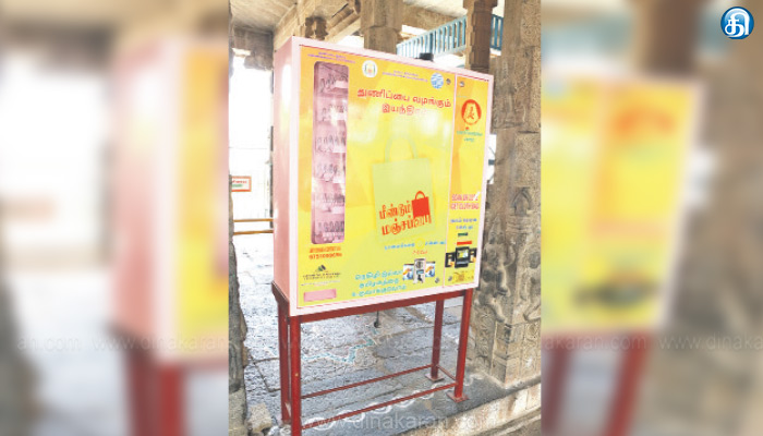 அதனடிப்படையில், காஞ்சிபுரம் ஏகாம்பரநாதர் கோயிலில் காஞ்சிபுரம் மாவட்ட நிர்வாகத்துடன் இணைந்து தமிழ்நாடு மாசு கட்டுப்பாட்டு வாரியம் சார்பில் பிளாஸ்டிக் பைகள் பயன்படுத்துவதை நிறுத்தும் வகையில் மீண்டும் மஞ்சப்பை பயன்பாட்டினை கொண்டுவர தானியங்கி மஞ்சப்பை இயந்திரம் நிறுவப்பட்டது. இதை காஞ்சிபுரம் கலெக்டர் மற்றும் எம்பி செல்வம் ஆகியோர் துவக்கிவைத்தனர். சில நாட்கள் மட்டும் மஞ்சப்பை வழங்கும் இயந்திரம் முறையாக செயல்பட்டது.