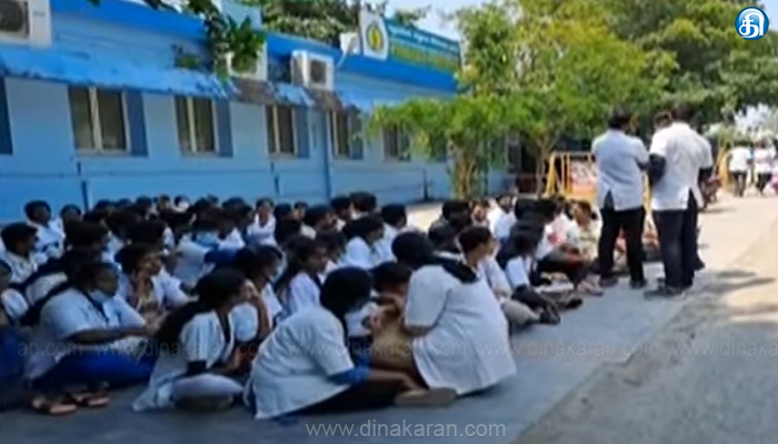 இந்நிலையில் 3ம் ஆண்டு படித்து வரும் மாணவிக்கு மூத்த மருத்துவர் பாலியல் தொல்லை கொடுத்ததாக கல்லூரி முதல்வரிடம் 2 நாட்களுக்கு முன்பாக மனு அளிக்கப்பட்டுள்ளது. அந்த மனு தொடர்பாக எந்த நடவடிக்கையும் எடுக்கவில்லை எனவும் பாலியல் தொல்லை அளித்தவரிடம் எவ்விதமான விசாரணை மேற்கொள்ளவில்லை எனவும் மாணவ, மாணவிகள் ஒன்றாக மருத்துவ கல்லூரி முதல்வரை முற்றுகையிட்டனர்.