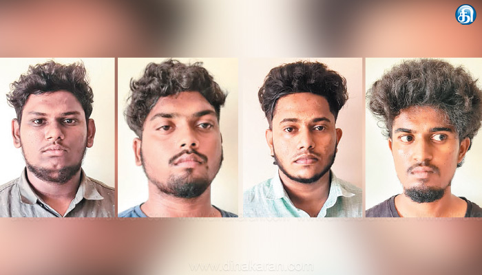 இந்த புகாரின்பேரில், கூடுவாஞ்சேரி போலீசார் வழக்குப்பதிவு செய்து, அப்பகுதி சிசிடிவி காமிரா பதிவுகள் மூலம் 4 பேர் கொண்ட மர்ம கும்பலை வலைவீசி தேடினர். விசாரணையில், அதே தனியார் அடுக்குமாடி குடியிருப்பில் தங்கியிருந்த கல்லூரி மாணவர்களிடம் சகஜமாக பழகி, அவர்களை மிரட்டி செல்போன், லேப்டாப் பறித்தது ஊத்துக்கோட்டையை சேர்ந்த சாதிக் (20), மோகன்பாபு (21), காஞ்சிபுரத்தை சேர்ந்த மாதேஸ்வரன் (21), விஷ்வா (23) எனத்தெரியவந்தது. இதில் சாதிக், விஷ்வா ஆகிய இருவரும் பொத்தேரியில் ஒரு தனியார் கல்லூரியில் கம்ப்யூட்டர் சயின்ஸ் 3ம் ஆண்டு படிக்கின்றனர்.