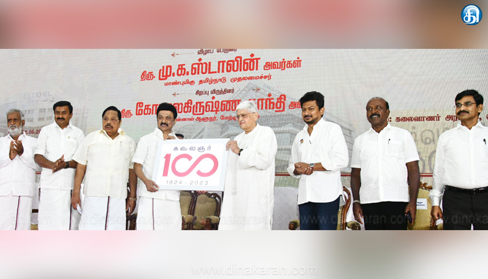 இலக்கியவாதிகளுக்கு எல்லாம் இலக்கியவாதியாக, கவிஞர்களுக்கு எல்லாம் கவிஞராக, அரசியல் தலைவர்களுக்கு எல்லாம் தலைவராக, முதலமைச்சர்களுக்கு எல்லாம் முதல்வராக திகழ்ந்த தலைவர் கலைஞருடைய நூற்றாண்டு விழாவை ஆண்டு முழுவதும் கொண்டாட தமிழ்நாடு அரசு திட்டமிட்டுள்ளது. அதுகுறித்த இலச்சினையை (லோகோ) வெளியிட்டு இருக்கிறோம். கலைஞர் பெயரால் மாபெரும் நூலகம் மதுரையில் அமைய இருக்கிறது. சென்னையில் அவரது நூற்றாண்டு நினைவு மருத்துவமனை அமைய இருக்கிறது. அரசின் சார்பில் மாதம்தோறும் மாவட்டம்தோறும் விழாக்களை நடத்த இருக்கிறோம்.