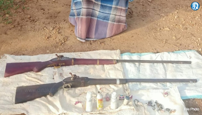 ஸ்ரீவில்லிபுத்தூர்: ஸ்ரீவில்லிபுத்தூர் அருகே வத்திராயிருப்பில் விலங்குகளை வேட்டையாட பயன்படுத்திய 2 நாட்டுத் துப்பாக்கிகள் பறிமுதல் செய்துள்ளனர். உரிமமின்றி துப்பாக்கி வைத்திருந்த சரவணக்குமார் என்பவரை கைது செய்து 78 தோட்டாக்களையும் போலீஸ் பறிமுதல் செய்தது.