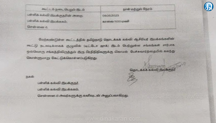 அதன்படி, வரும் 12ம் தேதி வட்டாரத் தலைநகரில் கவன ஈர்ப்பு ஆர்ப்பாட்டம் நடத்துவது, 26ம் தேதி மாவட்ட தலைநகரங்களில் ஆர்ப்பாட்டம், ஜூலை 14ம் தேதி சென்னையில் கோட்டையை நோக்கி பேரணி நடத்தி முதல்வரிடம் கோரிக்கை மனு அளித்தல் என அறிவிக்கப்பட்டுள்ளன. டிட்டோஜாக்கின் இந்த போராட்ட அறிவிப்பை அடுத்து, பள்ளிக்கல்வித்துறை மற்றும் ெதாடக்க கல்வித்துறை இயக்குநர்கள் உடனடியாக டிட்டோஜாக் உயர்மட்டக் குழுவினரை அழைத்து பேச்சு வார்த்தை நடத்த வேண்டும் என்று முதல்வர் உத்தரவிட்டுள்ளார். அதன் பேரில் சென்னை கல்வி வளாகத்தில் இன்று பேச்சு வார்த்தை நடக்கிறது.