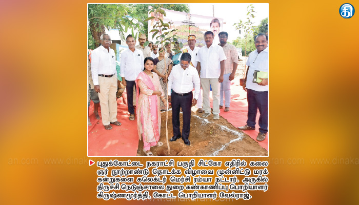 புதுக்கோட்டை நகராட்சி, தஞ்சாவூர் சாலை, சிட்கோ எதிரில், கலைஞர் நூற்றாண்டு தொடக்க விழாவினை முன்னிட்டு, நெடுஞ்சாலைத்துறையின் சார்பில், மரக்கன்றுகளை, கலெக்டர் மெர்சி ரம்யா நேற்று நட்டார்.