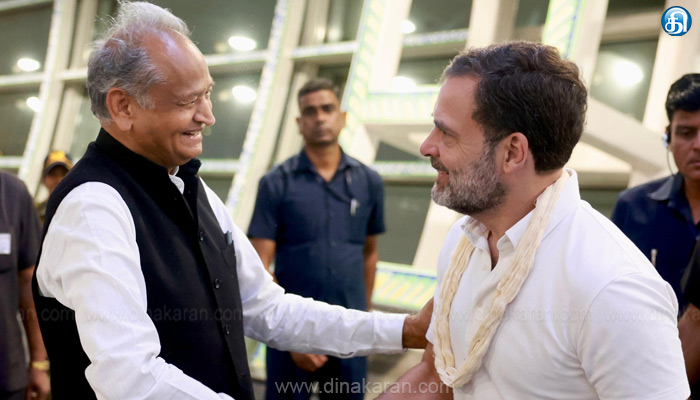 ஜெய்ப்பூர்: காங்கிரஸ் கட்சியின் முன்னாள் தலைவர் ராகுல் காந்தி இன்று காலை ராஜஸ்தான் சென்றார். ராஜஸ்தான் மாநிலத்தில் தற்போது அசோக் கெலாட் தலைமையிலான காங்கிரஸ் கட்சியின் ஆட்சி நடைபெற்று வருகிறது. இந்த ஆண்டு இறுதியில் சட்டப்பேரவை தேர்தல் நடைபெற உள்ளது. இதற்கான பணிகளில் அனைத்து கட்சிகளும் தீவிரமாக ஈடுபட்டு வருகின்றன. இந்தநிலையில் காங்கிரஸ் கட்சியின் முன்னாள் தலைவர் ராகுல் காந்தி, ஒரு நாள் பயணமாக இன்று காலை ராஜஸ்தான் சென்றார். ஜெய்ப்பூர் விமான நிலையத்தில் முதல்வர் அசோக் கெலாட், மாநில காங்கிரஸ் கட்சி பொறுப்பாளர் சுக்ஜிந்தர் ரந்தாவா ஆகியோர் ராகுலை வரவேற்றனர்.