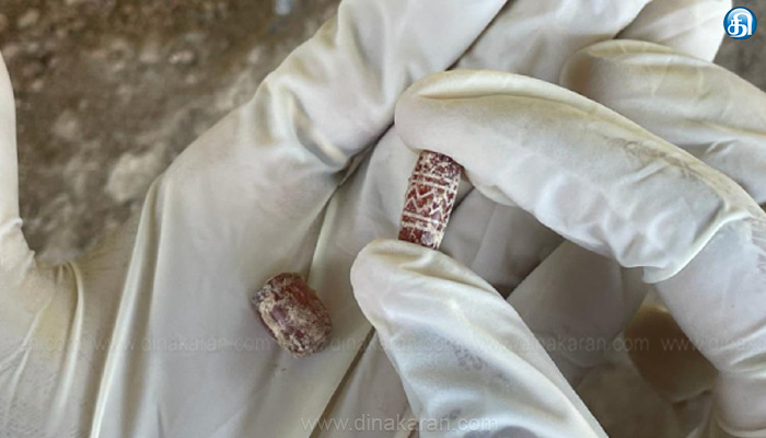 The post கீழடியில் வேலைப்பாடுகளுடன் கூடிய 2 கார்னிலியன் சூதுபவளங்கள் கண்டுபிடிப்பு..2500 ஆண்டுகள் பழமையானது!! appeared first on Dinakaran.