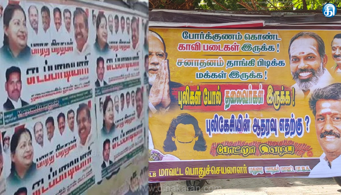 The post தனித்து நின்றால் பாஜகவுக்கு டெபாசிட் கூட கிடைக்காது!: புலிகள் போல் தலைவர்கள் இருக்க..புலிகேசியின் ஆதரவு எதற்கு?.. அதிமுக, பாஜகவினர் இடையே போஸ்டர் யுத்தம்..!! appeared first on Dinakaran.