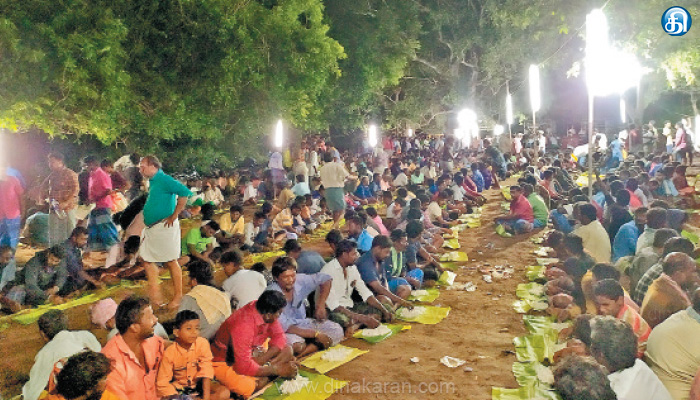 தொடர்ந்து நேற்றுமுன்தினம் நள்ளிரவில் சடையாண்டி சாமிக்கு சிறப்பு பூஜைகள் நடந்தன. இதில் ஆயிரக்கணக்கான பக்தர்கள் கலந்து கொண்டு சாமி தரிசனம் செய்தனர். பூஜை முடிந்தவுடன் ஆண் பக்தர்களுக்கு காலை வரை விடிய, விடிய அசைவ உணவு பறிமாறப்பட்டது. பெரிய உருண்டைகளாக பிடிக்கப்பட்ட சோறுடன், எலும்பு குழம்பு, மட்டன் வறுவல் போன்றவை பறிமாறப்பட்டன்.