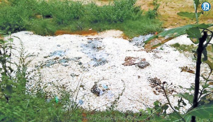 எனவே, சம்பந்தப்பட்ட துறை அதிகாரிகள் நேரில் பார்வையிட்டு, நீர்நிலை பகுதிகளில் கோழி முட்டை கழிவுகளை கொட்டுபவர்களுக்கு அபராதம் விதிக்க வேண்டும். மேலும், இதுபோல் கழிவுகளை கொட்டுவதை தடுக்க உரிய நடவடிக்கை எடுக்க வேண்டும் என அப்பகுதி மக்கள் கோரிக்கை விடுத்துள்ளனர்.