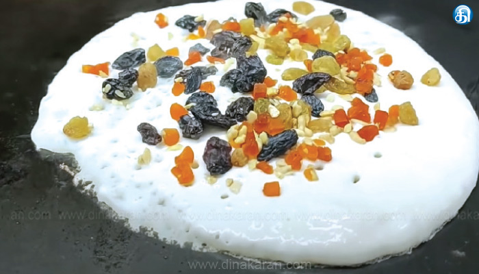 இது எல்லாமே 50 ரூபாய்தான். இது இல்லாம ஒவ்வொரு நாளுக்கும் ஒரு ஸ்பெஷல் தோசை கொடுக்குறோம். திங்கள்கிழமை ராகி தோசை, செவ்வாய்க்கிழமை கம்பு தோசை, புதன்கிழமை பெசரட் (பச்சைப்பயறு) தோசை, வியாழக்கிழமை அடை அவியல்,வெள்ளிக்கிழமை மிளகு தோசைன்னு கிழமை வாரியாக ரெடி பண்றோம். சனி மற்றும் ஞாயிற்றுக்கிழமைகள்ல 7 டேஸ்ட் ஊத்தாப்பம்னு ஒரு வெரைட்டி ரெடி பண்றோம். இதுல வெஜ், ஆனியன், பொடி, நெய்னு 7 டேஸ்ட்ல சின்ன சின்னதா ஊத்தாப்பம் ரெடி பண்ணி கொடுப்போம். இந்த 7 ஊத்தாப்பமும் 105 ரூபாய்க்கு கொடுக்குறோம். இதோட ரவா தோசை, ஆனியன் தோசை, முந்திரி ரவா தோசை, வெஜிடபிள் மசாலா டபுள் தோசைன்னு சில ரகம் ரெடி பண்றோம். அதேபோல நெய் ரோஸ்ட், நெய் பொடி தோசை, நெய் மசால் தோசை, முந்திரி ஊத்தாப்பம், டிரை ப்ரூட் ஊத்தாப்பம்னு சில வெரைட்டி கொடுக்கிறோம். இதெல்லாம் ரூ.60தான். எல்லா வேலையும் நானேபார்த்துக்கிட்டிருந்த நிலையில எனக்கு இப்ப உடம்புக்கு கொஞ்சம் முடியாம இருக்கு. பசங்க ரெண்டு பேரும் படிச்சிட்டு வேலையில இருக்காங்க. நீங்க கஷ்டப்பட வேணாம், வீட்லயே இருங்கப்பான்னு சொல்றாங்க. ஆனா நம்மளோட டேஸ்ட்டுக்காக நிறைய பேரு தினமும் வராங்க.