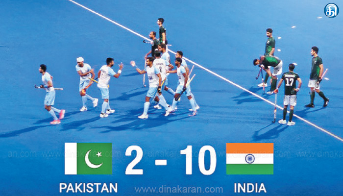 The post பாகிஸ்தானுக்கு எதிராக இந்தியா கோல் மழை: 10 கோல் போட்டு சாதனை appeared first on Dinakaran.