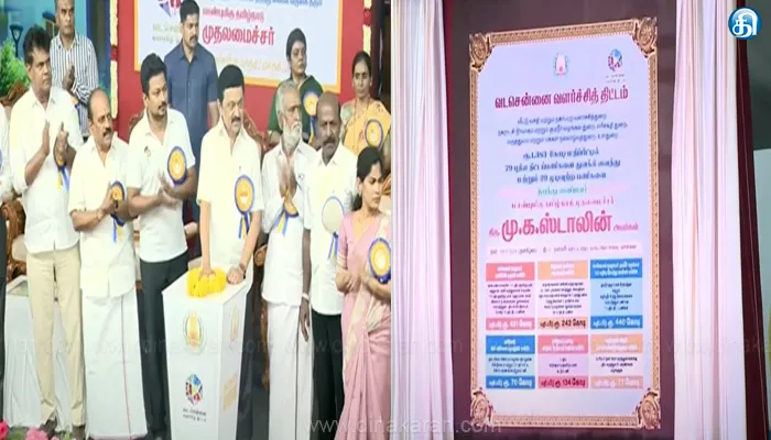 சென்னை: வடசென்னை வளர்ச்சித்திட்டத்தின் கீழ் ரூ.1,383 கோடியில் 79 புதிய திட்டப்பணிகளை தொடங்கி வைத்தார் முதல்வர் மு.க.ஸ்டாலின். வடசென்னை வளர்ச்சித்திட்டத்தின் கீழ் மேலும் 29 முடிவுற்ற திட்டப் பணிகளையும் முதல்வர் தொடங்கி வைத்தார். வடசென்னை வளர்ச்சித் திட்டத்தின்கீழ் ரூ.6309 கோடி மதிப்பீட்டில் 252 திட்டங்கள் செயல்படுத்தப்படுகின்றன. முதல்கட்டமாக ரூ.2097 கோடி மதிப்பீட்டில் 87 திட்டங்கள் மார்ச் 14-ல் துவக்கப்பட்டு பணிகள் நடைபெற்று வருகின்றன