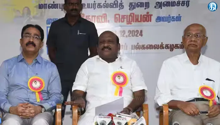 சென்னை: உயர்கல்வித் துறை அமைச்சர் கோவி.செழியன் தலைமையில் உயர்கல்வித்துறை பங்களிப்போர் கலந்தாய்வுக் கூட்டம் சென்னை பல்கலைக்கழக நூற்றாண்டு விழா அரங்கத்தில் நேற்று நடந்தது. கூட்டத்தில் உயர்கல்வித்துறை அமைச்சர் கோவி.செழியன் பேசியதாவது: “நான் முதல்வன்” என்ற திட்டத்தின் கீழ் இதுவரை 27 லட்சம் மாணாக்கர்களுக்கு திறன் மேம்பாட்டுப் பயிற்சி வழங்கப்பட்டுள்ளது. இதில் சுமார் 1 லட்சத்திற்கும் மேற்பட்டோர் தற்போது முக்கிய நிறுவனங்களில் பணி வாய்ப்புகள் பெற்று பணிபுரிந்து வருகின்றனர். புதுமைப்பெண் திட்டத்தின் கீழ் சுமார் 7 லட்சம் மாணவிகள் பயனடைந்து வருகின்றனர். அதேபோல் இவ்வாண்டு தொடங்கப்பட்ட தமிழ்ப்புதல்வன் திட்டத்தின் கீழ் சுமார் 2 லட்சம் மாணவர்கள் பயனடைந்து வருகின்றனர்.