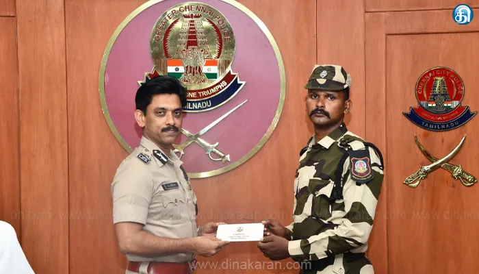 கூவம் ஆற்றில் தவறி விழுந்து உயிருக்கு போராடிக்கொண்டிருந்த பெண்ணை தக்க சமயத்தில் காப்பாற்றி முதலுதவி அளித்த முதல் நிலை காவலர் B.வினோத்தை சென்னை பெருநகர காவல் ஆணையாளர் A.அருண் அவர்கள் இன்று (13.12.2024) நேரில் அழைத்து வெகுவாகப் பாராட்டி வெகுமதி வழங்கினார்