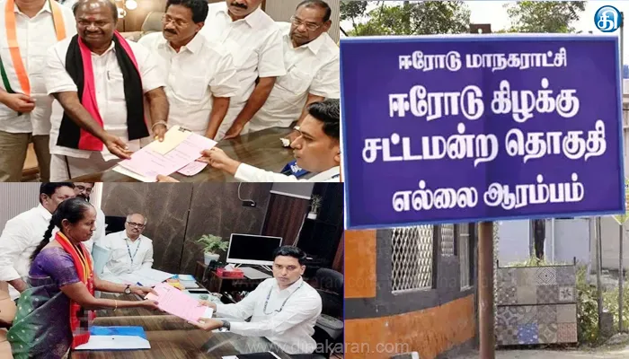 ஈரோடு கிழக்கு தொகுதிக்கான வேட்புமனு தாக்கல், ஈரோடு மாநகராட்சி அலுவலகத்தில் அமைக்கப்பட்டுள்ள தேர்தல் அலுவலகத்தில், ஜன.10-ம் தேதி தொடங்கியது. 10-ம் தேதியன்று 3 சுயேட்சை வேட்பாளர்கள், 13-ம் தேதி 6 சுயேட்சை வேட்பாளர்கள் என மொத்தம் 9 பேர் மனு தாக்கல் செய்திருந்தனர்.ஈரோடு கிழக்கு தொகுதியில் போட்டியிட வேட்புமனுத்தாக்கல் செய்ய இன்று (17-ம் தேதி) இறுதி நாளாகும். இன்று காலை தி.மு.க. வேட்பாளர் , நா.த.க. வேட்பாளர் வேட்புமனு தாக்கல் செய்தனர்.