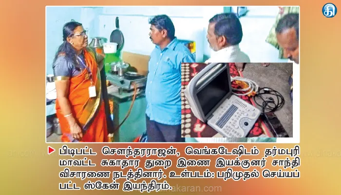 அவர்களை போலீசார் கைது செய்து விசாரித்து வருகின்றனர்.தர்மபுரி மாவட்டத்தில் இருக்கும் கர்ப்பிணி பெண்களுக்கு கருவில் இருக்கும் குழந்தை ஆணா? பெண்ணா? என்பதை கண்டறிய சேலம், கள்ளக்குறிச்சி உள்ளிட்ட மாவட்டங்களுக்கு அழைத்து சென்று, வீட்டில் வைத்து ஸ்கேன் மூலம் கண்டறியப்படுவதாக தர்மபுரி மாவட்ட இணை இயக்குனர் சாந்திக்கு ரகசிய தகவல் கிடைத்தது. அதன் அடிப்படையில், தர்மபுரி மாவட்ட சுகாதார துறை இணை இயக்குனர் சாந்தி தலைமையில், மருத்துவ குழுவினர் தர்மபுரியில் இருந்து கள்ளக்குறிச்சி மாவட்டம் சென்று அதிரடி சோதனையில் ஈடுபட்டு, ரஞ்சித் என்பவரை கைது செய்தனர்.