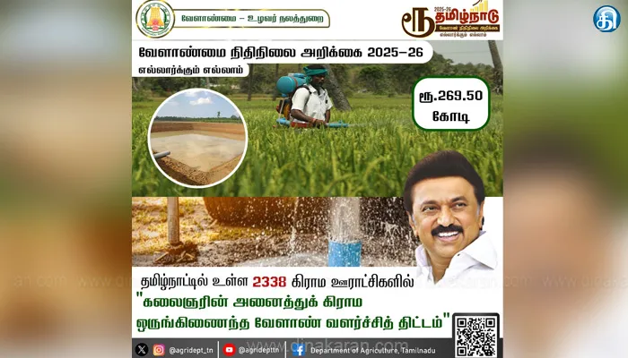 * கிராம ஒருங்கிணைந்த வேளாண் வளர்ச்சி திட்டத்தில் உழவர்கள் பயனடைய ரூ.269.50 கோடி ஒதுக்கீடு
