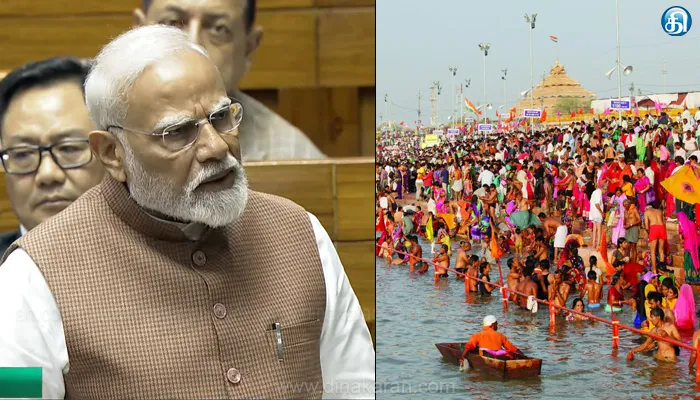 அடுத்த தலைமுறைக்கு இந்த கும்பமேளா ஒரு பெரும் உதாரணமாக திகழும். சுமார் ஒன்றரை மாத காலமாக மகா கும்பமேளாவின் உற்சவம் நடைபெற்றது. மொரிசியஸ் சென்ற போது திரிவேணி சங்கமத்தில் சேகரித்த புனித கலச நீரை கொண்டு சென்றேன். புனித நீரை மொரிசியஸ் நாட்டில் உள்ள கங்கா தலால் ஆற்றில் அர்ப்பணித்தேன் என்று கூறினார். மகா கும்பமேளா தொடர்பாக பிரதமர் மோடி பேசி வரும் நிலையில் எதிர்க்கட்சியினர் கடும் அமளியில் ஈடுபட்டனர்.