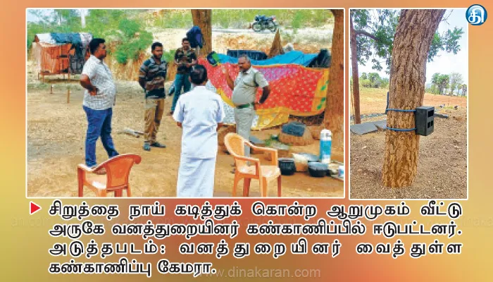 அதேபோல் இன்னொரு வீட்டில் இருந்த நாய், நேற்று முன்தினம் இரவு பயங்கரமாக குரைத்த வண்ணம் ஓடியுள்ளது. பாலவாடி கரடு பகுதியில் உள்ள ஆறுமுகம் வீட்டின் முன்பு, வனத்துறையினர் கண்காணிப்பு கேமரா பொருத்தி விடிய, விடிய கண்காணிப்பில் ஈடுபட்டுள்ளனர்.