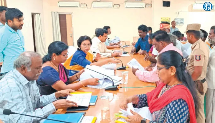 இதில் பொதுமக்கள் மற்றும் மாற்றுத்திறனாளிகளிடம் கோரிக்கை மனுக்களை பெற்று கலெக்டர் குறைகளை கேட்டறிந்தார். மேலும் டிஆர்ஓ சுரேஷ், ஊரக வளர்ச்சி முகமை திட்ட இயக்குனர் ஜெயசுதா, நேர்முக உதவியாளர் விஜயராகவன், சமூக பாதுகாப்பு திட்ட தனி துணை ஆட்சியர் கீதா லட்சுமி, மாவட்ட வழங்கல் அலுவலர் ஏகாம்பரம், ஆதிதிராவிடர் மற்றும் பழங்குடியினர் நல அலுவலர் அறிவுடைய நம்பி, பிற்படுத்தப்பட்டோர் மற்றும் சிறுபான்மையினர் நல அலுவலர் சுகுமார், மாற்றுத்திறனாளி நல அலுவலர் சரவணன் ஆகியோரும் பொதுமக்களிடம் மனுக்களை பெற்றனர்.