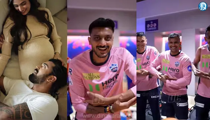 விசாகப்பட்டினத்தில் லக்னோவுடனான ஐபிஎல் லீக் போட்டியில் டெல்லி அணியின் முக்கிய வீரர்களில் ஒருவரான கே.எல்.ராகுல் ஆடாதது பலருக்கு வியப்பை ஏற்படுத்தியது. லக்னோ அணிக்கு எதிராக கடைசி ஓவரில் டெல்லி அணி திரில் வெற்றி பெற்றதை அந்த அணி வீரர்கள் உற்சாகமாக கொண்டாடிய சமயத்தில், கே.எல். ராகுல் தந்தை ஆன செய்தி, அவரது மனைவியும் நடிகையுமான ஆதியா ஷெட்டியின் சமூக வலைதளப் பக்க பதிவு மூலமாக தெரிய வந்தது. அதனால் இரட்டிப்பு மகிழ்ச்சியில் திளைத்த டெல்லி கேப்டன் அக்சர் படேல் உள்ளிட்ட வீரர்கள், குழந்தையை தாலாட்டி கொஞ்சுவது போல நடித்து, ‘எங்கள் குடும்பம் விரிவடைந்துள்ளது. எங்கள் குடும்பம் கொண்டாடுகிறது’ என தலைப்பிட்டு ராகுலுக்கு வாழ்த்து வீடியோ வெளியிட்டனர். அதற்கு ராகுல் நன்றி தெரிவித்துள்ளார்.