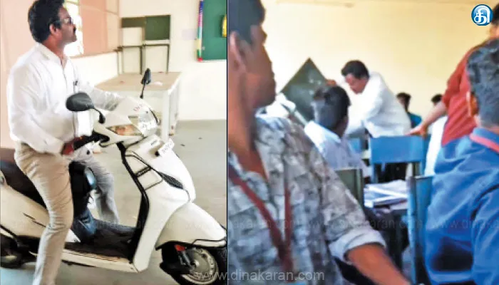 The post மாணவர்களை நாற்காலியால் தாக்க முயன்று வகுப்பறைக்குள் ஸ்கூட்டர் ஓட்டி கல்லூரி பேராசிரியர் அட்ராசிட்டி: அதிரடி சஸ்பெண்ட் appeared first on Dinakaran.