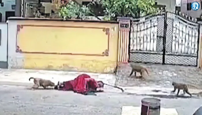 இந்நிலையில் குரங்குகள் மூதாட்டியை கீழே தள்ளி தாக்கும் சிசிடிவி வீடியோ காட்சிகள் வைரலாகி வருகிறது. இதற்கிடையில் வாரங்கல் மாவட்டம் பெரிகேடுவில் குரங்கு கடித்ததில் அங்கம்மா(76) என்ற மூதாட்டி பரிதாபமாக உயிரிழந்தார். அடுத்தடுத்த சம்பவங்களால் தெலங்கானாவில் பெரும் பரபரப்பு ஏற்பட்டுள்ளது. இதுகுறித்து அதிகாரிகள் நடவடிக்கை எடுத்து குரங்குகள் தொல்லையை தடுக்க வேண்டும் என பொதுமக்கள் கோரிக்கை விடுத்துள்ளனர்.