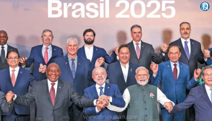 இந்த அமைப்பு கடந்த ஆண்டு சர்வதேச வர்த்தகத்தில் அமெரிக்க டாலருக்கு பதிலாக புதிய கரன்சியை உருவாக்க திட்டமிட்டது. இதனால் ஆத்திரமடைந்த அதிபர் டிரம்ப், பொது கரன்சியை உருவாக்க திட்டமிட்டால், பிரிக்ஸ் நாடுகளுக்கு 100 சதவீத வரி விதிக்கப்படும் என எச்சரித்தார். இந்த நிலையில், பிரிக்ஸ் அமைப்பின் 17வது உச்சி மாநாடு பிரேசிலின் ரியோ டி ஜெனிரோ நகரில் நேற்று முன்தினம் தொடங்கியது. உலக நாடுகளுக்கு எதிராக அமெரிக்க அதிபர் டிரம்ப் கூடுதல் வரி விதித்து மிரட்டிக் கொண்டிருக்கும் சூழலில், பிரிக்ஸ் அமைப்பின் உச்சி மாநாடு நடப்பது உலகின் கவனத்தை ஈர்த்துள்ளது.