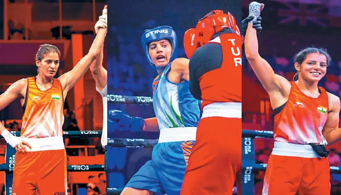 அஸ்தானா: கஜகஸ்தானில் நடந்த உலக குத்துச் சண்டை சாம்பியன்ஷிப் போட்டிகளில் இந்திய வீராங்கனைகள் சாக்ஷி, ஜெய்ஸ்மின், நூபுர் தங்கப் பதக்கங்கள் வென்று சாதனை படைத்தனர்.