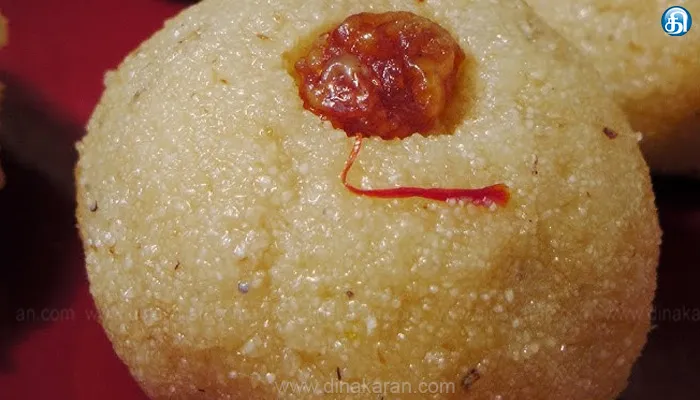 2 மேசைக்கரண்டி நெய்யில் முந்திரிப் பருப்பு, கிஸ்மிஸ் பழம் இரண்டையும் வறுத்து அதோடு ஒரு கப் ரவையைச் சேர்த்து வறுக்கவும்.1/2 கப் சீனியை பொடித்து வைத்துக் கொள்ளவும்.ரவை வாசனை வந்ததும் சீனிப்பொடியைச் சேர்த்து இறக்கவும்.நன்கு கிளறிப் பால் தெளித்துக் கிளறவும்.ரவை கலவையை லட்டுகளாகப் பிடிக்கவும்.
