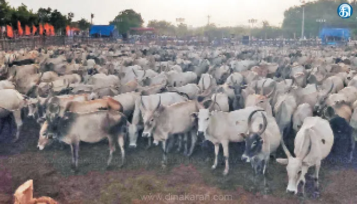 மதுரை: மதுரை விராதனூரில் நேற்று நாம் தமிழர் கட்சியின் உழவர் பாசறை சார்பில் ஆடு, மாடுகள் மாநாடு நடந்தது. மாநாட்டிற்கு கட்சியின் தலைமை ஒருங்கிணைப்பாளர் சீமான் தலைமை வகித்தார். மாநாட்டு பகுதியில் 3 ஆயிரம் கிடை மாடுகள், 2 ஜல்லிக்கட்டு காளைகள், 100 ஆடுகள் உள்ளிட்டவை பட்டியில் அடைக்கப்பட்டிருந்தன. மாநாடு நடந்த இடத்தில் கனமழை பெய்ததால், மாடுகள் மழையில் நனைந்தபடி பெரும் சிரமத்திற்கு ஆளானது. மாநாட்டில், வன உரிமை அங்கீகாரச்சட்டப்படி, மேய்ச்சல் சமூக மக்களுக்கு வழங்கியுள்ள வன மேய்ச்சல் உரிமையை வழங்க வேண்டும்.
