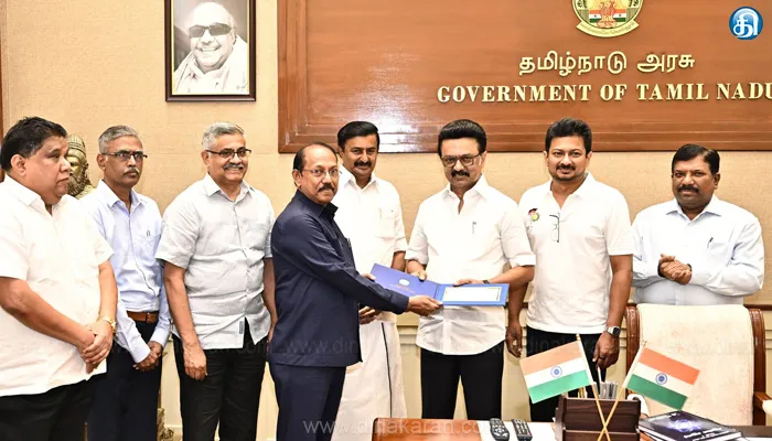 சென்னை: தமிழ்நாடு முதலமைச்சர் அறிவுரைப்படி, தமிழ்நாடு சட்டப்பேரவையில் தமிழ் வளர்ச்சித் துறையின் 2025-26ம் ஆண்டிற்கான மானியக் கோரிக்கையில் தமிழ் வளர்ச்சி மற்றும் செய்தித் துறை அமைச்சர் “தமிழ் வளர்ச்சிக் கழகம் தொய்வின்றி செயற்பட ரூ.2 கோடி வைப்புத் தொகை வழங்கப்படும்” என அறிவிக்கப்பட்டது. இதைசெயல்படுத்திட, தமிழ் வளர்ச்சிக் கழகம் தொடர்ந்து தொய்வின்றி செயல்பட்டு தமிழ் வளர்ச்சிப் பணிகளை மேற்கொள்ளும் வகையிலும் ரூ.2 கோடி வைப்புநிதியாக வைத்து அதிலிருந்து வரும் வட்டித்தொகையை மேற்கண்ட பணிகளை மேற்கொள்வதற்கு தமிழ் வளர்ச்சிக் கழகம் பயன்படுத்திக் கொள்ள, ரூ.2 கோடியே 15 லட்சத்திற்கான காசோலையை முதல்வர் மு.க.ஸ்டாலின், தமிழ் வளர்ச்சி கழகத் தலைவர் ராசேந்திரனிடம் வழங்கினார். நிகழ்வின்போது, துணை முதல்வர் உதயநிதி ஸ்டாலின், தமிழ் வளர்ச்சி மற்றும் செய்தித் துறை அமைச்சர் சாமிநாதன், தலைமைச் செயலாளர் முருகானந்தம், தமிழ் வளர்ச்சி மற்றும் செய்தித் துறை செயலாளர் ராஜாராமன், உலகத் தமிழாராய்ச்சி நிறுவனத்தின் தலைவர் பாலகிருஷ்ணன் (ஓய்வு), தமிழ் வளர்ச்சித் துறை இயக்குநர் அருள் ஆகியோர் உடனிருந்தனர்.
