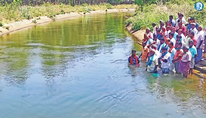கேட்டால் குளத்துக்கு செல்கிறது என்கின்றனர். குளத்துக்கு தண்ணீர் விட அரசாணை எதுவும் கிடையாது. ஆயக்கட்டு விவசாயிகள் பாசனத்துக்கு தண்ணீர் இல்லாமல் சிரமப்படுகின்றனர். 25 ஆயிரம் ஏக்கரில் பயிர் செய்துள்ள விவசாயிகளின் வாழ்வாதாரம் பாதிக்கும் வகையில், ஒரு சிலரின் வாய்மொழி உத்தரவு காரணமாக தண்ணீர் செல்வதாக கூறுகிறார்கள். எனவே, அரசின் கவனத்துக்கு கொண்டு செல்லும் வகையில் கால்வாயில் இறங்கி போராட்டம் நடத்துகிறோம். இதுகுறித்து அரசு உரிய நடவடிக்கை எடுக்க வேண்டும். இவ்வாறு அவர் கூறினார்.
