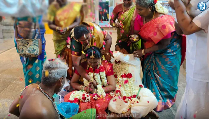 தூத்துக்குடி: ஆனி மாத கடைசி முகூர்த்தம் என்பதால் திருச்செந்தூர் சுப்பிரமணிய சுவாமி கோயிலில் ஒரே நேரத்தில் 25 திருமணங்கள் நடைபெற்றன. திருமணம் முடிந்த கையோடு கோயில் யானை தெய்வானையிடம் புதுமண தம்பதிகள் ஆசீர்வாதம் பெற்றனர்.