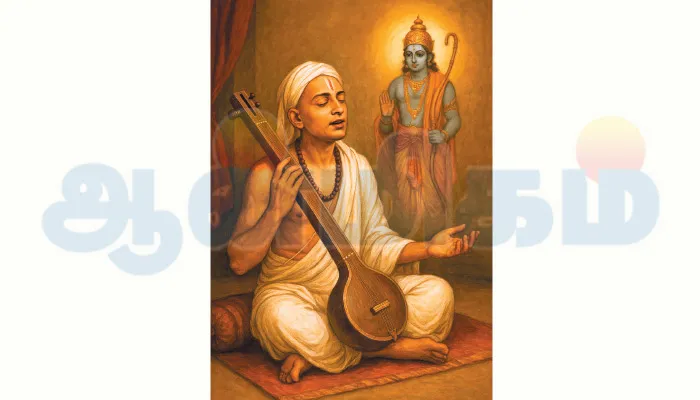 தியாகராஜர் சுற்றி இருக்கும் அத்துணை பேரையும் வணங்கும் வண்ணமாய் கைகளைக் கூப்பினார். கூட்டம் மொத்தமும் ராமா ராமா என்று ஆர்ப்பரித்தது. குரலை உயர்த்தி தியாகராஜர்,
