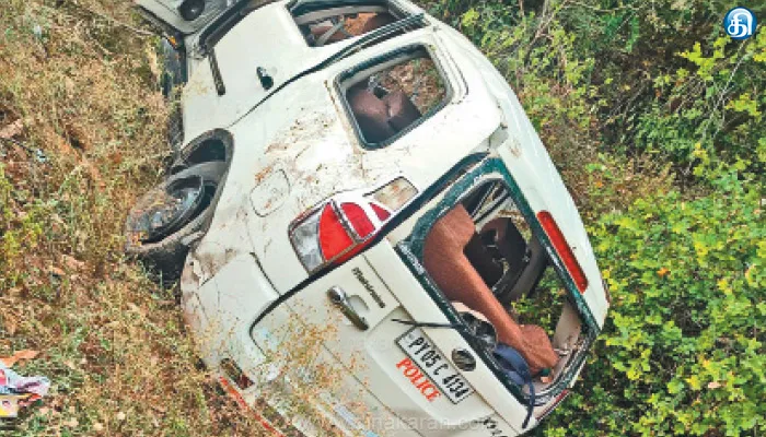 திருக்கோவிலூர்: விழுப்புரம் மாவட்டம், திருக்கோவிலூர் அடுத்த தேவனூர் கூட்ரோடு பகுதியை சேர்ந்தவர் மாதவன் (44). இவர் விழுப்புரம் ஆயுதப்படை பிரிவில் காவலராக பணியாற்றி வருகிறார். இவர் தனது குடும்பத்தினர் மற்றும் உறவினர்களுடன் திருவண்ணாமலை அண்ணாமலையார் கோயிலுக்கு காரில் நேற்று காலை புறப்பட்டுள்ளார். காரை மாதவன் ஓட்டினார்.