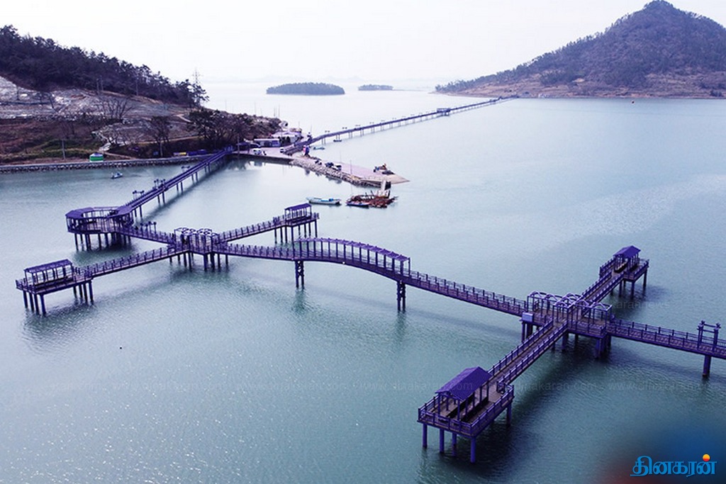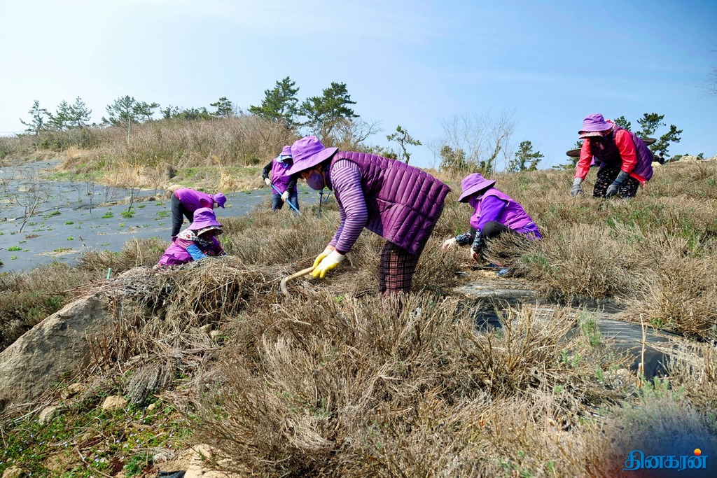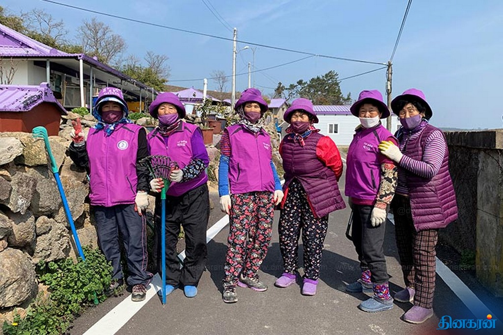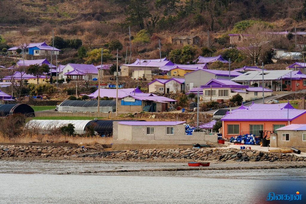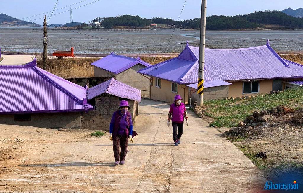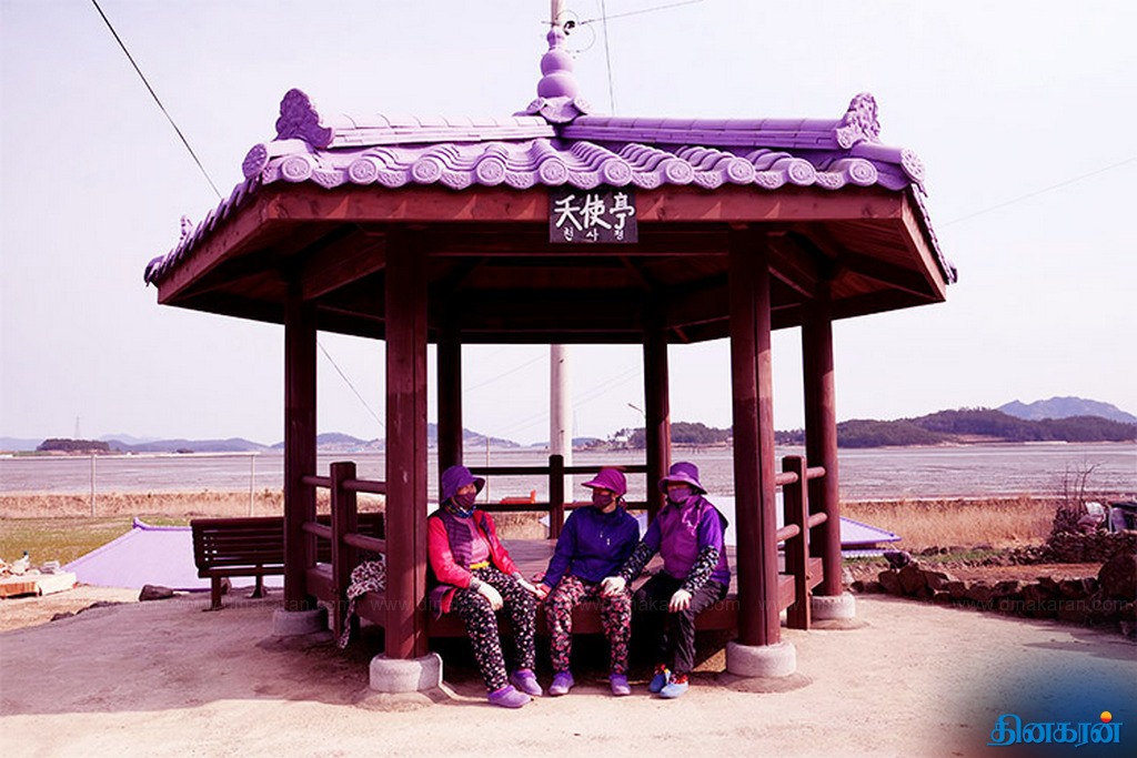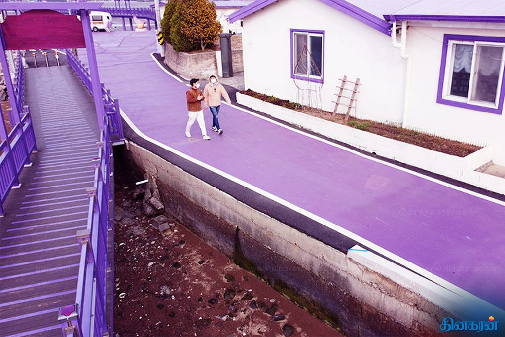 விசித்திர நிகழ்வு!: ஊதா நிறத்தில் உடை, சாலை, வீட்டுக்கூரை, உணவைக் கொண்டு காட்சியளிக்கும் தென்கொரியத் தீவுகள்..!!