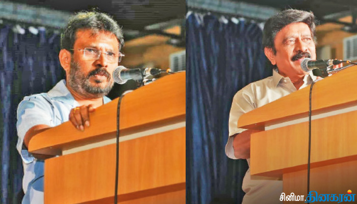 நடிப்பு ராட்சசி ரச்சிதா மகாலட்சுமி கலக்கியிருக்கிறார்’ என்றார். அவருக்கு பதிலடி கொடுத்து பேசிய செயலாளர் பேரரசு, ‘ஆர்.வி.உதயகுமார் இயக்குனர் சங்க தலைவரா? இல்லை. ரச்சிதா மகாலட்சுமியின் ரசிகர் மன்ற தலைவரா என்று தெரியவில்லை. அந்தளவுக்கு தீவிர ரசிகராக இருக்கிறார். ரச்சிதா மகாலட்சுமி எந்த கதாபாத்திரத்தை கொடுத்தாலும் அப்படியே மாறிவிடுகிறார். அவருக்கு வாழ்த்துகள்’ என்றார். ஒரே சங்கத்தில் பதவி வகிக்கும் இரண்டு இயக்குனர்களும், நடிகர்களும், பாடலாசிரியர்களுமான பேரரசு, ஆர்.வி.உதயகுமார் இருவரும் மேடையில் மோதல் ஏற்படுவது போல் பேசியது சுவாரஸ்யமாக இருந்தது.