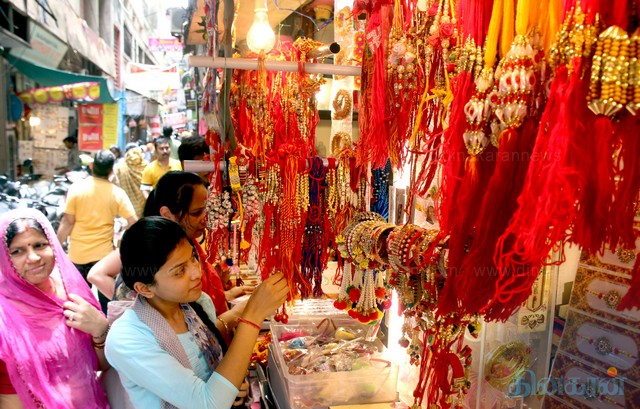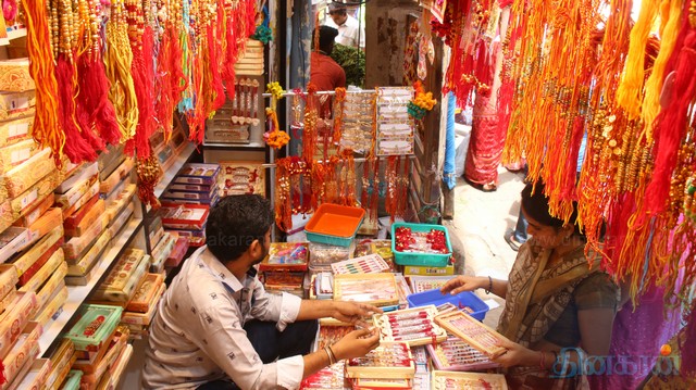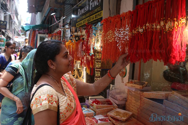 வடமாநிலத்தவர்கள் கொண்டாடும் சகோதரர்கள் தினமான ரக்ஷா பந்தன் நாளை மறுநாள் கொண்டாடப்படுவதை முன்னிட்டு, சென்னை சவுகார்பேட்டையில் ராக்கி கயிறு விற்பனை சூடுபிடித்துள்ளது. தங்கள் சகோதரர்கள் கையில் கட்ட விதவிதமாக விற்பனை செய்யப்படும் ராக்கி கயிறுகளை பெண்கள் ஆர்வமுடன் தேர்வு செய்கின்றனர்.