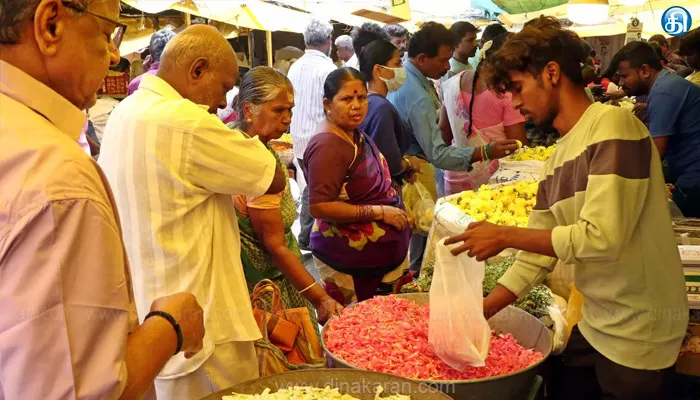 உயர்ந்துள்ளது. ரூ.250க்கு விற்பனையான ஒரு கிலோ மல்லிகை ரூ.900க்கும்; ரூ.100-க்கு விற்ற ஒரு கிலோ முல்லை ரூ.500-க்கு விற்பனை செய்யப்படுகிறது. கிலோ ரூ.150-க்கு விற்ற கனகாம்பரம் ரூ.500-க்கும், ரூ.30-க்கு விற்பனையான ஒரு கிலோ சம்பங்கி ரூ.350க்கும் விற்கப்படுகிறது.
