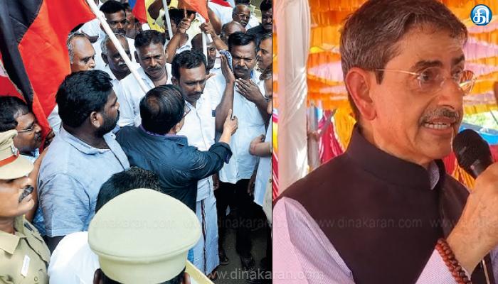 ஆளுநர் ஆர்.என்.ரவி வருகைக்கு எதிர்ப்பு தெரிவித்து, நேற்று காலை ராமநாதபுரம் கலெக்டர் அலுவலக நுழைவாயிலில், சிஐடியூ மாவட்ட செயலாளர் சிவாஜி தலைமையில் காங்கிரஸ், கம்யூனிஸ்ட், மதிமுக, விடுதலைச் சிறுத்தைகள் கட்சி மற்றும் தமிழ்நாடு விவசாய சங்க நிர்வாகிகள் கையில் கருப்புக் கொடியேந்தி போராட்டத்தில் ஈடுபட்டனர். அப்போது, ஆளுநருக்கு எதிராக கோஷமிட்டு திடீர் போராட்டத்தில் ஈடுபட்ட 50க்கும் மேற்பட்டவர்களை கேணிக்கரை போலீசார் கைது செய்தனர்.