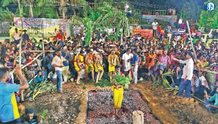இதனை தொடர்ந்து சனிக்கிழமை கணபதி ஹோமம், நவச்சண்டியாக பூஜையும் தொடர்ந்து, கும்பாபிஷேக தினமான ஞாயிற்றுக்கிழமை நவச்சண்டியாக பூஜை, கலச அபிஷேகம் பிறகு பக்தர்களுக்கு பிரசாதம் வழங்கப்பட்டது. மேலும், காப்பு கட்டிய பக்தர்கள் 150 பேர் வேப்பிலை அணிந்து நாவேல் தரித்து கோயிலை வலம் வந்தனர். பின்னர் பக்தர்கள் ஒவ்வொருவராக தீக்குழியில் இறங்கினர். இந்த தீமிதி திருவிழாவை காண 2 ஆயிரத்துக்கும் மேற்பட்ட பொதுமக்கள் கலந்து கொண்டனர்.